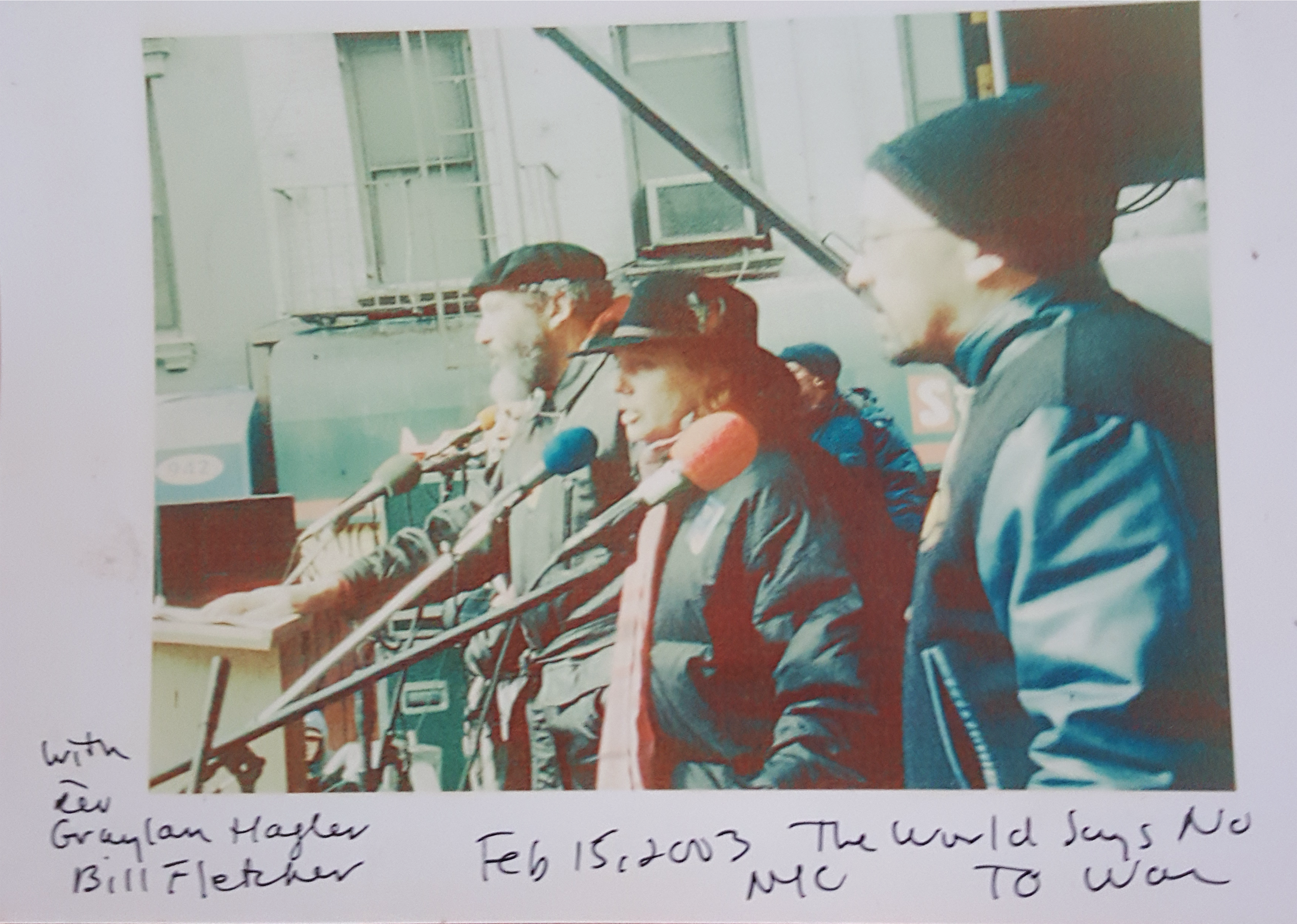 Projects that Kathy was instrumental in creating include: No More Witch Hunts, a national day of resistance (June 19, 1981); talkingnicaragua (1983), a dramatization about U.S. policy in Nicaragua; and Moving Towards Home (1982), the first poetry reading in the U.S. with U.S., Lebanese, Palestinian and Israeli poets, sponsored by PEN America and supporting Unicef’s work with children in Lebanon. Moving Towards Home was followed by readings hosted by Congressman John Conyers in the Rayburn House Office building, Washington, D.C, and the Arab American Cultural Center, Detroit, and the creation of a chapbook and then anthology in 2006. Other projects include: Stand with Sisters for Economic Dignity (2002), which was dubbed by Washington D.C. press as “the Vagina Monologues of economic justice;” Who I Will Be, a performance piece with formerly incarcerated women; Imagining Peace, following the attacks on the World Trade Center and impending U.S. invasions of Afghanistan and Iraq; Re-Plant Haiti, a performance at Carnegie Hall in support of environmental and agricultural recovery following the floods in Gonaive, Haiti; a multi-faceted campaign working with Amnesty International, the NAACP Death Penalty Project and others that led to a last minute stay of execution for Death Row inmate Shaka Sankofa; work with the Center for Constitutional Rights against racist police brutality and killings; and a campaign in support of HIV positive Haitian refugees held at Guantanamo Bay.